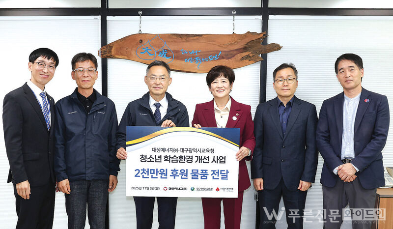 대구시교육청은 지난 3일(월) 대성에너지(주) 본사에서 ‘청소년 학습환경 개선 지원사업’ 전달식을 개최하고, 취약계층 학생 44명에게 2,000만 원 상당의 책상과 의자를 지원했다.