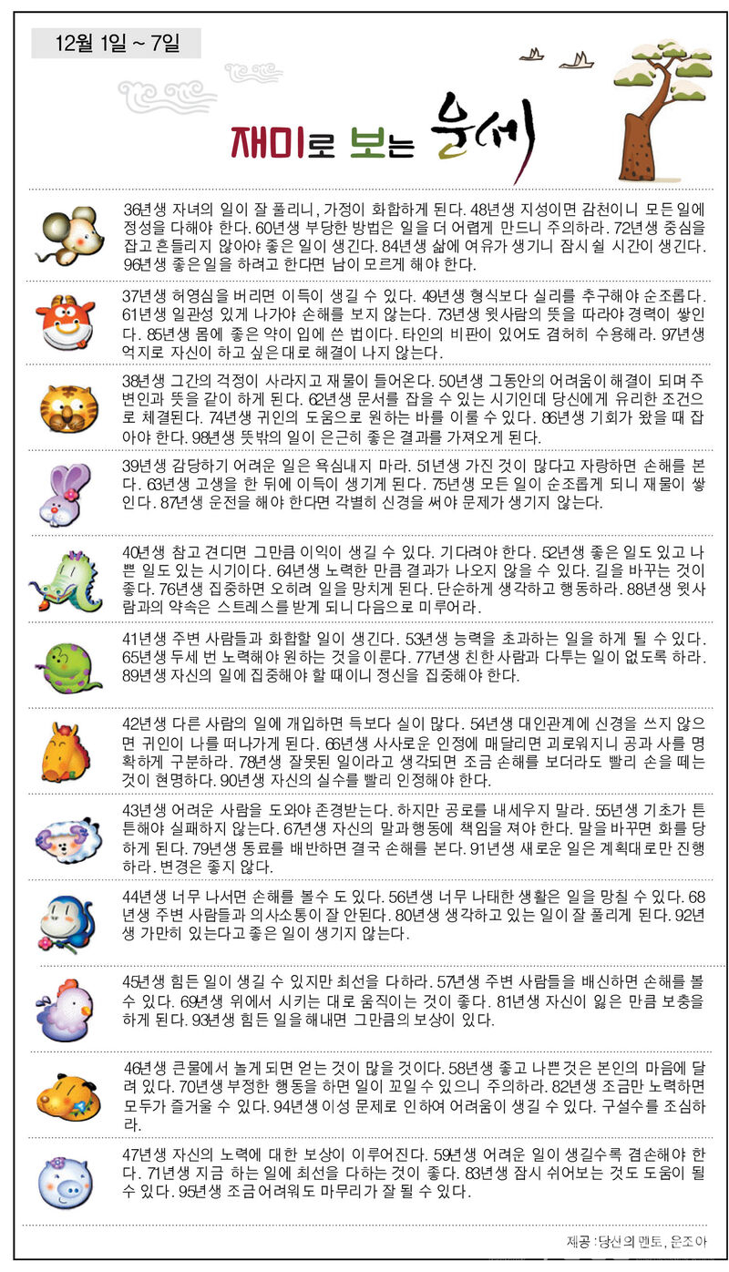 재미로 보는 운세(12월 1일~7일)