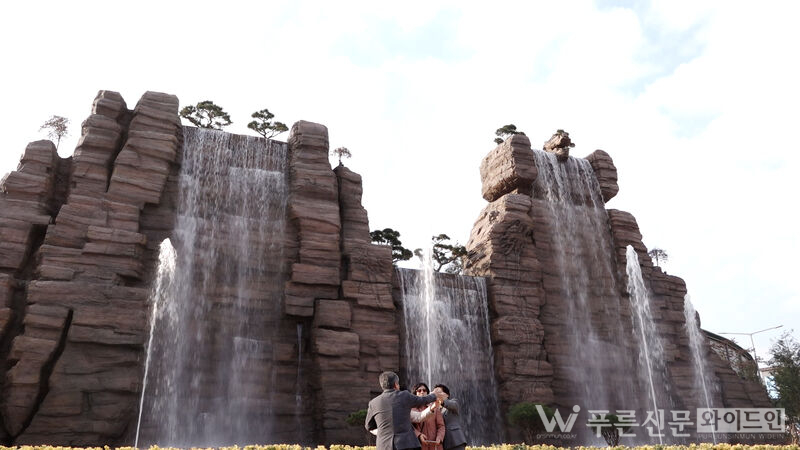 올해 5월 착공해 11월 준공된 성서IC 벽천분수는 달서구의 대표 명산인 와룡산 퇴적암의 질감을 모티브로 디자인돼 실제 암석을 연상케 하는 자연스러운 형태를 구현했다. 총 길이 36m, 높이 16m 규모로 조성된 분수는 성서IC를 지나는 방문객에게 웅장한 첫인상을 제공하도록 설계됐다.