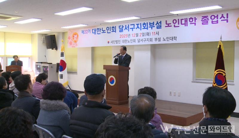 대한노인회 달서구지회가 지난 2일 지회 회의실에서 제22기 노인대학 졸업식을 열고, 올 한 해 배움의 열정을 이어온 200명의 어르신들에게 졸업장을 수여했다.