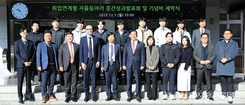 경북기계공업고등학교는 지난 1일(월) 스마트형인재개발센터에서 ‘산학협력 중간보고회 및 기념비 제막식’을 개최했다.