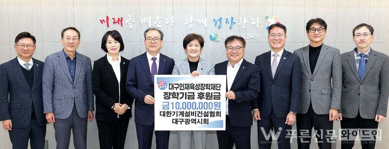 대한기계설비건설협회 대구광역시회(회장 이민균)는 지난 4일(목) 대구인재육성장학재단에 장학금 1천만 원을 기탁했다.