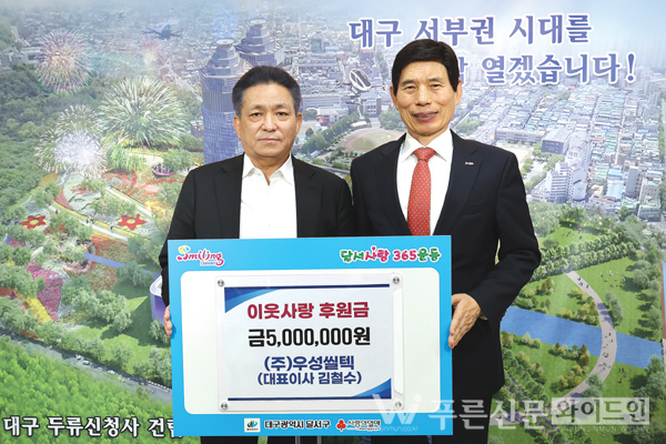 ㈜우성씰텍, 성금 500만 원 기탁 [사진제공=달서구청]