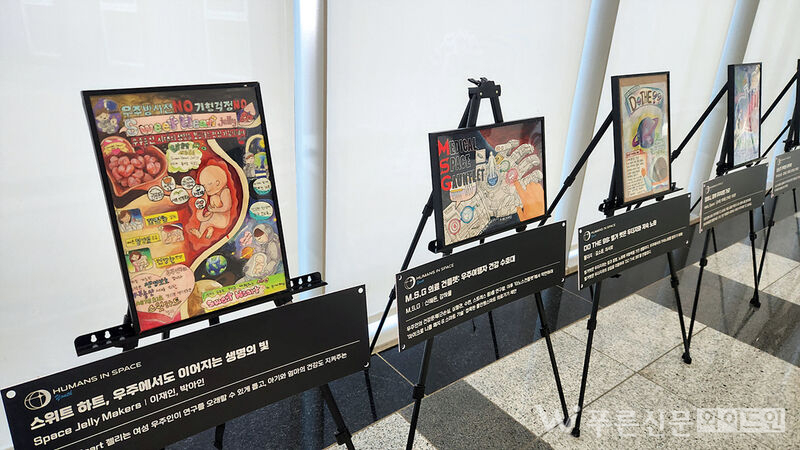 이번 전시에는 ‘2024 HIS Youth’ 우주과학 경진대회 수상작과 ISS 발표 예정 작품 등 40여 점이 전시되며, 일부 작품은 ISS 탑재용 특수 코팅 원본 그대로 선보인다.