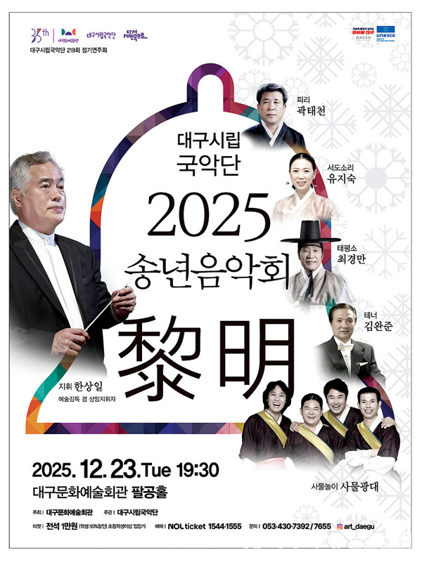 대구시립국악단은 12월 23일(화) 오후 7시 30분 대구문화예술회관 팔공홀에서 2025 송년음악회 ‘여명(黎明)’을 연다.