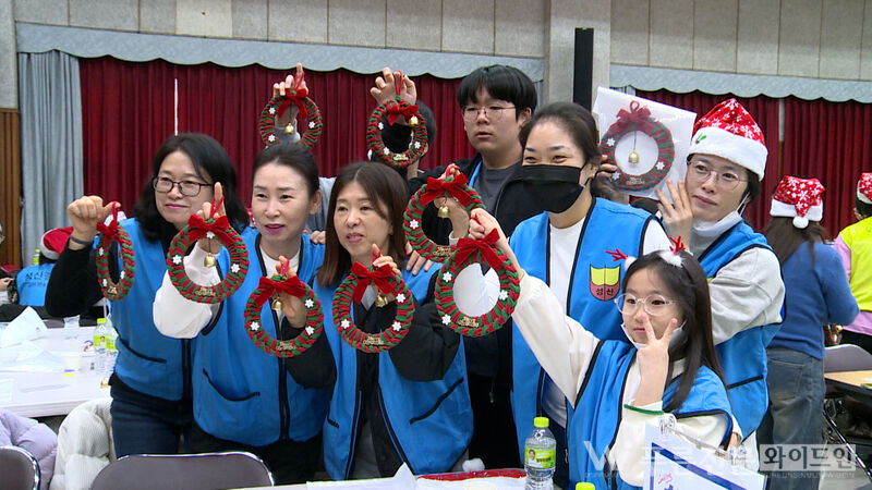 이날 행사장에는 산타 복장을 한 ‘산타 가족’과 중·고등학생, 대학생, 전문 봉사자 등 130여 명이 모여 연말 특유의 따뜻한 분위기를 더했다. 참가자들은 초록색과 빨간색 양말목을 하나하나 엮어 크리스마스 리스를 만들고, 직접 완성한 리스에 간식 세트와 학용품을 담아 정성껏 선물 상자를 꾸렸다.