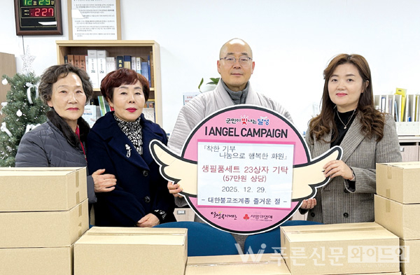 대한불교조계종 즐거운 절 자비회(주지 상정스님)는 지난해 12월 29일(월) 화원읍 행정복지센터를 방문해 57만 원 상당의 생필품 23박스를 기탁했다.