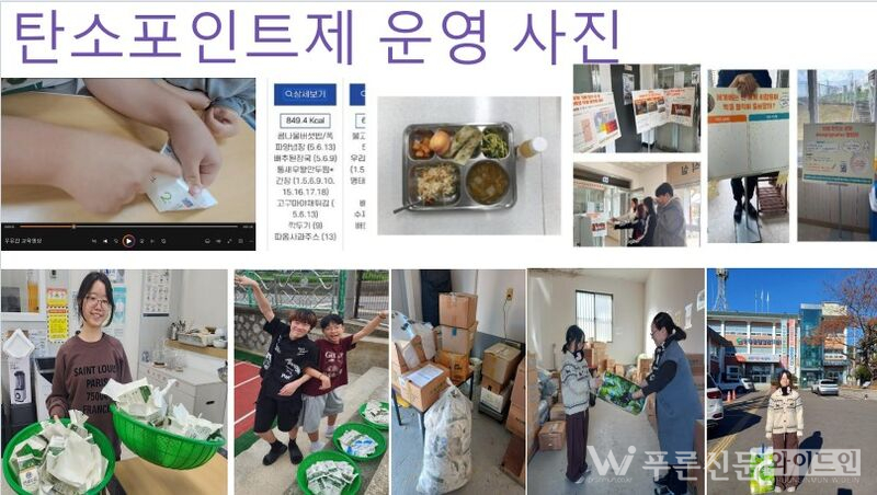 학교는 2019년부터 생태·환경 중심 교육과정을 운영해 왔으며, 2024년부터는 ‘교내 탄소포인트제’를 도입해 운영 중이다. 이 제도는 급식 잔반 줄이기와 우유갑 분리배출 실적을 개인 및 학급별 포인트로 적립하는 방식으로, 학생들의 실천을 수치화해 지속적인 참여를 유도한다.