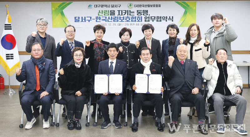 달서구청은 한국산림보호협회(중앙회장 허태조)와 산림 보호와 가치 증진을 위한 업무협약(MOU)을 체결했다. 양 기관은 산불 예방, 합동 순찰, 환경 정화, 교육·홍보 등 도심 산림 관리와 기후위기 대응에 공동 협력한다.
