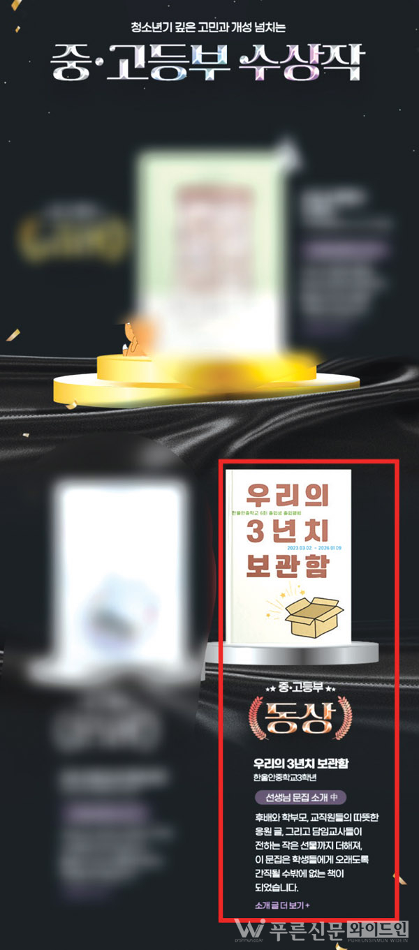 이번 어워즈는 2025년에 제작된 학급·동아리·학교 문집을 대상으로 접수와 온라인 투표를 거쳐 수상작을 선정했으며, 수상 결과는 지난 16일(금) 발표됐다.