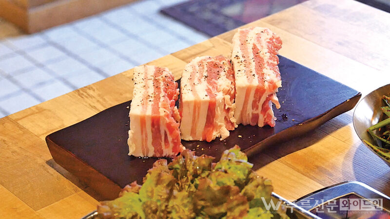 이 집의 대표 메뉴는 단연 눈꽃삼겹살이다. 삼겹살에 정교하게 칼집을 내 구워내는 방식으로, 고기는 한층 더 부드럽고 식감이 살아난다. 매일 직접 손질한 고기는 먹기 좋게 숙성시켜 오랜 경험에서 나온 비법으로 감칠맛을 더해 손님상에 오른다. 칼집 하나에도 ‘왜 이렇게 해야 하는지’를 아는 내공이 담겨 있다.