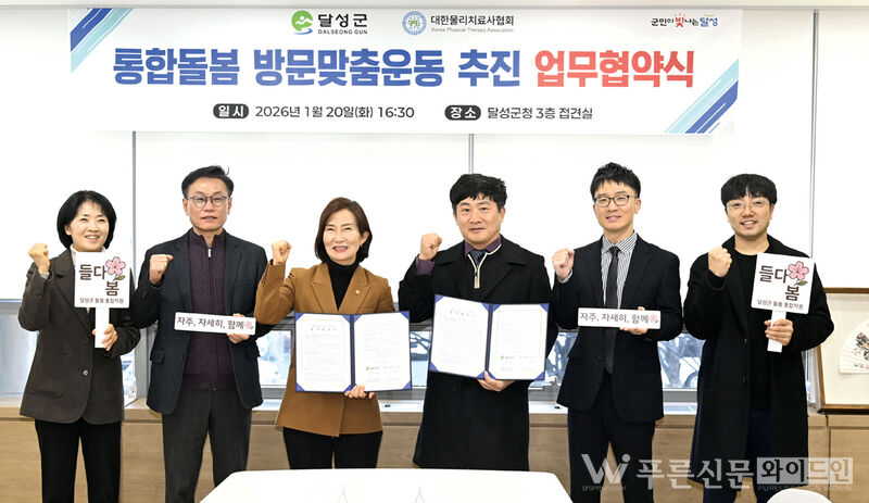 달성군은 시범사업을 추진하며 예방적 돌봄의 중요성을 느끼고 (사)대한물리치료사협회 대구시회와 업무협약을 체결했다.