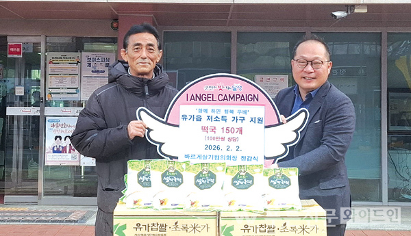 정갑식 유가읍 바르게살기협의회장은 떡국(700g) 150개(100만 원 상당)를 유가읍에 기부했다.