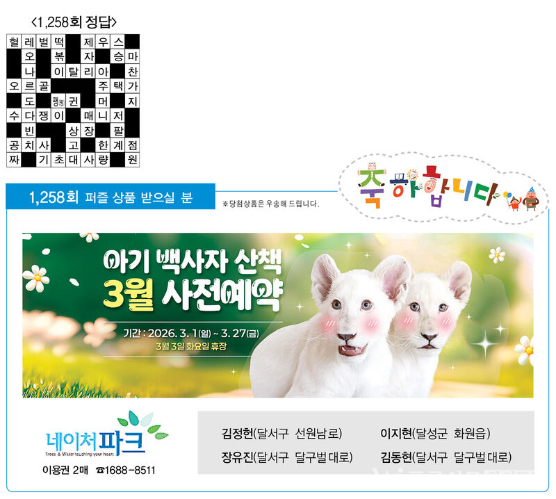 ♣ ‘가족과 함께 풀어보세요’정답을 아시는 분은 본사 편집부로 보내주시기 바랍니다. 3월 17일(화)까지 도착된 엽서 중에서 추첨을 통해 상품을 드립니다.