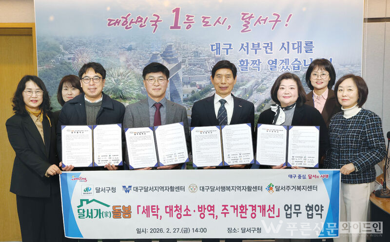 달서구는 생활밀착형 통합돌봄 ‘달서가(家)돌봄’ 서비스를 위해 지역 자활센터 3곳(대구달서지역자활센터, 대구달서행복지역자활센터, 달서주거복지센터)과 업무협약을 체결했다.