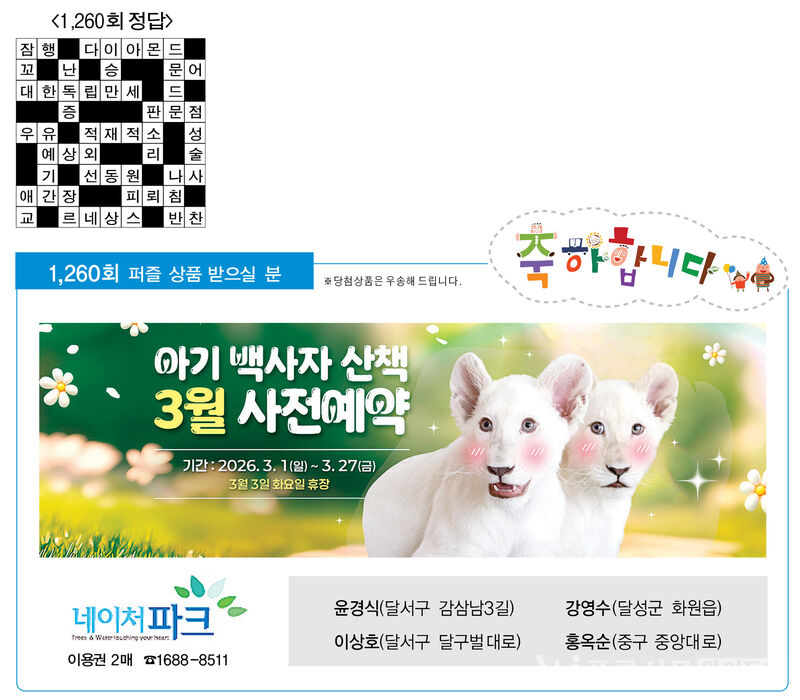 ♣ ‘가족과 함께 풀어보세요’정답을 아시는 분은 본사 편집부로 보내주시기 바랍니다. 3월 31일(화)까지 도착된 엽서 중에서 추첨을 통해 상품을 드립니다.