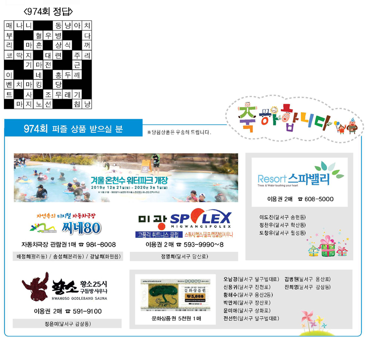 ◑ ‘가족과 함께 풀어보세요’ 낱말퍼즐을 만들어 푸른신문으로 보내주세요. 채택된 분께는 작은 선물을 우송해 드립니다.