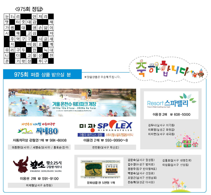 ◑ ‘가족과 함께 풀어보세요’ 낱말퍼즐을 만들어 푸른신문으로 보내주세요. 채택된 분께는 작은 선물을 우송해 드립니다.