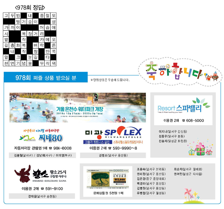 ◑ ‘가족과 함께 풀어보세요’ 낱말퍼즐을 만들어 푸른신문으로 보내주세요. 채택된 분께는 작은 선물을 우송해 드립니다.