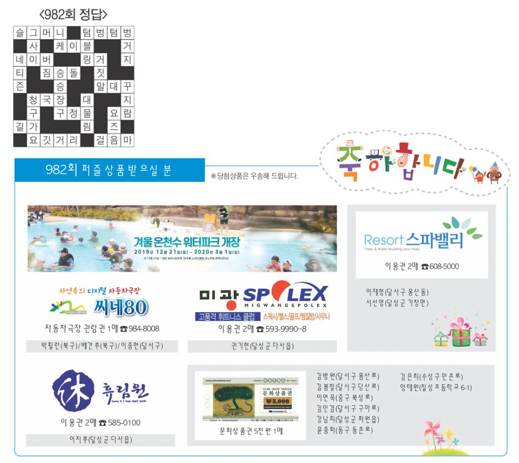 ♣ ‘가족과 함께 풀어보세요’정답을 아시는 분은 본사 편집부로 보내주시기 바랍니다.