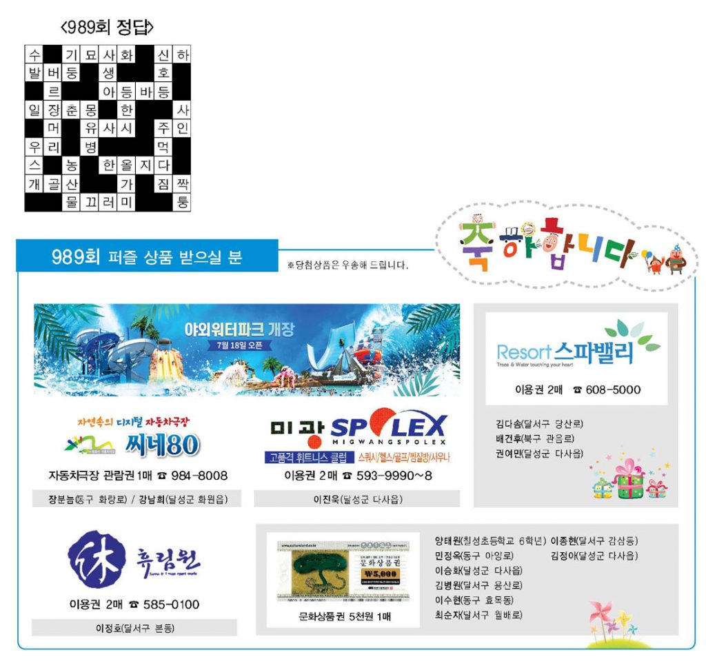 ♣ ‘가족과 함께 풀어보세요’정답을 아시는 분은 본사 편집부로 보내주시기 바랍니다. 9월 29일까지 도착된 엽서 중에서 추첨을 통해 상품을 드립니다. 주소를 정확히 기재해 주십시오. 당첨상품을 우송해 드립니다.
