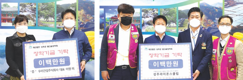 월항면 우리건설주식회사 대표 이영미 2백만 원(누적액 4백만 원), 성주라이온스클럽 2백만 원, 선남면 (주)모아 대표 송재동 5백만 원(누적액 18백만 원) 등이 그 주인공.