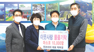 윈코리아(대표 박부경)에서 18일 고령군청을 방문해 코로나19의 관내 확산방지를 위해 직접 생산한 마스크 10,000매를 기부했다.