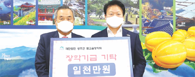 ㈜청진이엔씨 박명진 회장은 지난 11일 (재)성주군별고을장학회를 찾아 장학금을 지역인재를 위해 써달라며 장학금 1천만 원 기탁했다.