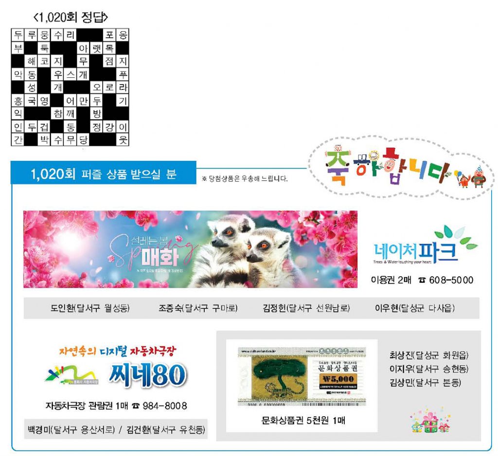 ♣ ‘가족과 함께 풀어보세요’정답을 아시는 분은 본사 편집부로 보내주시기 바랍니다. 5월 11일까지 도착된 엽서 중에서 추첨을 통해 상품을 드립니다. 주소를 정확히 기재해 주십시오. 당첨상품을 우송해 드립니다.