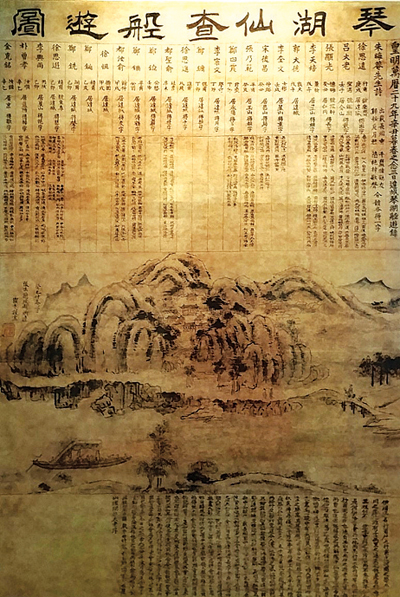 금호선사선유는 지금으로부터 정확히 420년 전인 1601년 3월 23일 행해진 선유다. 조선중기 대구를 대표하는 선비이자 임란의병장이었던 낙재 서사원. 그는 임진왜란이 끝나자 고향인 이천리 선사 금호강가에 완락재를 건립했다. 이 완락재 낙성을 축하하기 위해 대구 인근 23인의 선비들이 완락재에 모였고, 그들이 개최한 선유가 바로 금호선사선유였다. 이날 선유에는 좌장인 서사원을 비롯해 감호 여대로·여헌 장현광 등 당시 대구를 중심으로 한 한강학파·여헌학파·낙재학파 선비들이 모였다. 1박 2일에 걸쳐 진행된 선유에서는 주자의 시 「무이정사잡영」 중 ‘어정시’를 차운해 시를 짓는 시회를 가졌다.