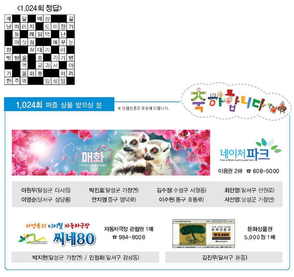 ♣ ‘가족과 함께 풀어보세요’정답을 아시는 분은 본사 편집부로 보내주시기 바랍니다. 6월 8일까지 도착된 엽서 중에서 추첨을 통해 상품을 드립니다. 주소를 정확히 기재해 주십시오. 당첨상품을 우송해 드립니다.