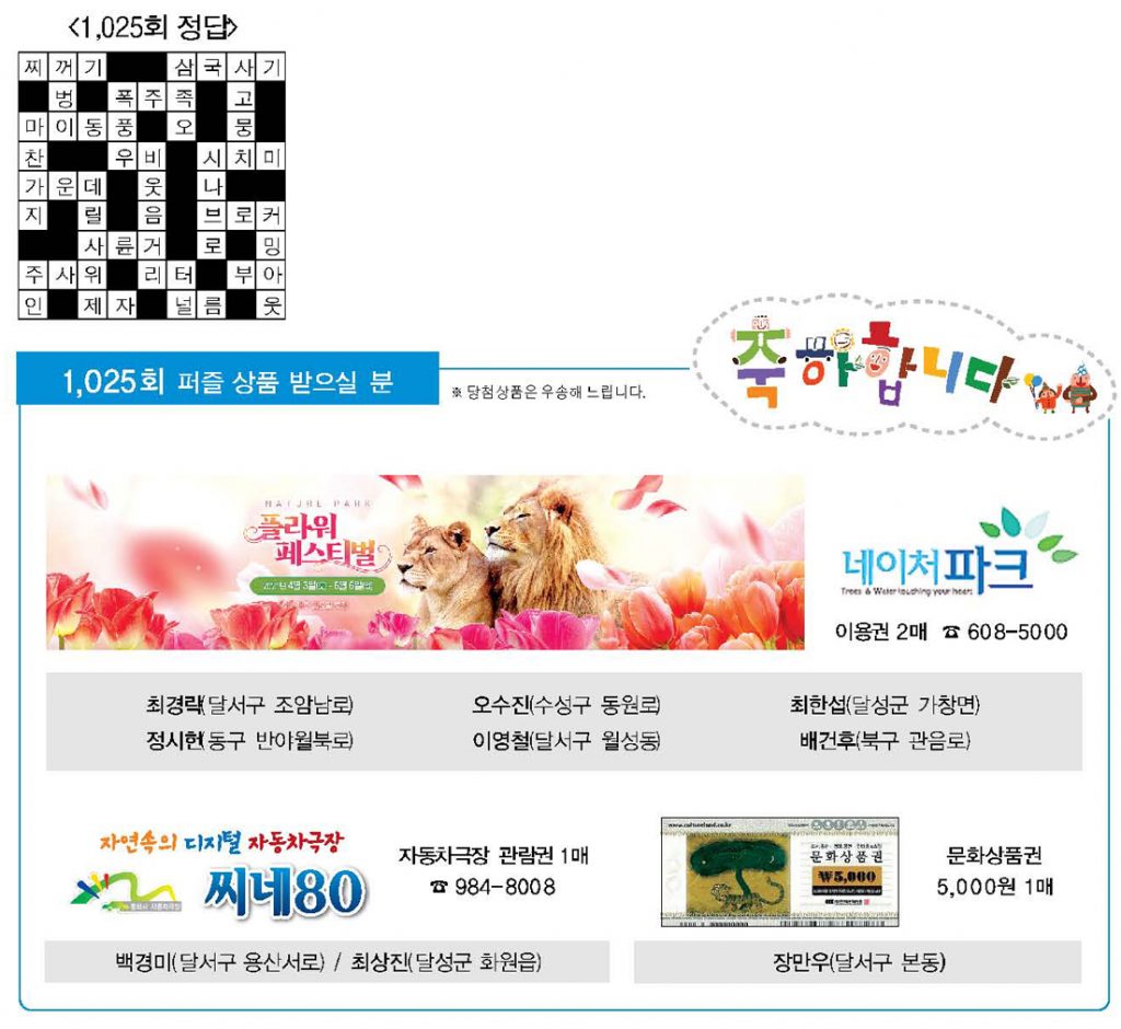E-mail:pr5726000@naver.com ☞응모엽서에 성명과 우편번호를 반드시 적어 주세요. ▶정답자 발표 : 1,175호