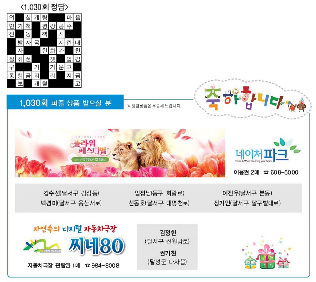 ◑ ‘가족과 함께 풀어보세요’ 낱말퍼즐을 만들어 푸른신문으로 보내주세요. 채택된 분께는 작은 선물을 우송해 드립니다.