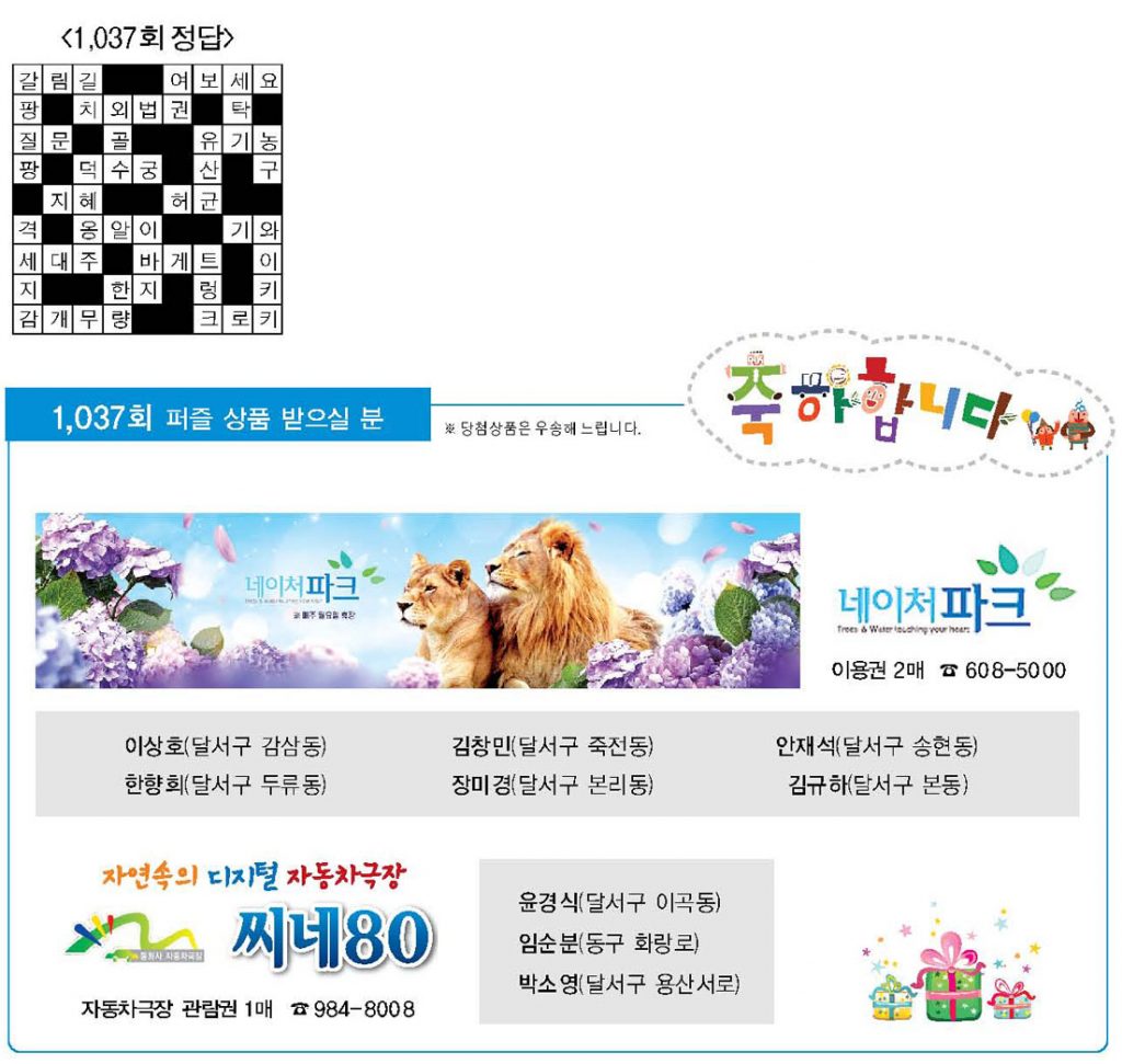 ♣ ‘가족과 함께 풀어보세요’정답을 아시는 분은 본사 편집부로 보내주시기 바랍니다. 9월 14일까지 도착된 엽서 중에서 추첨을 통해 상품을 드립니다. 주소를 정확히 기재해 주십시오. 당첨상품을 우송해 드립니다.