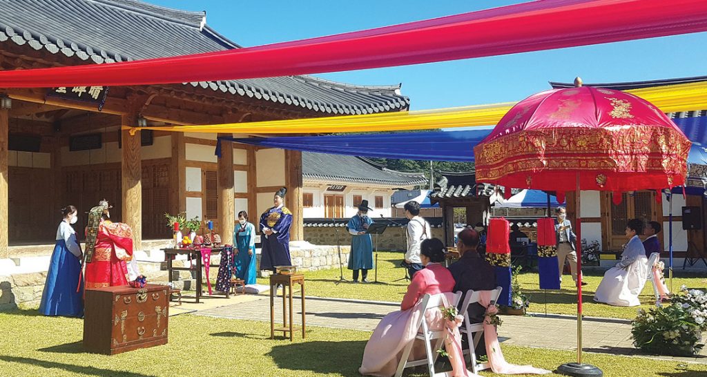 결혼하기 좋은 성주를 홍보하고 트렌디한 결혼식을 지원하는 성주군 나만의 결혼식이 도합 여덟 번째 치러졌지만 지난달 23일 결혼식은 특별히 전통혼례 방식으로 처음 하객들에게 선보였다.