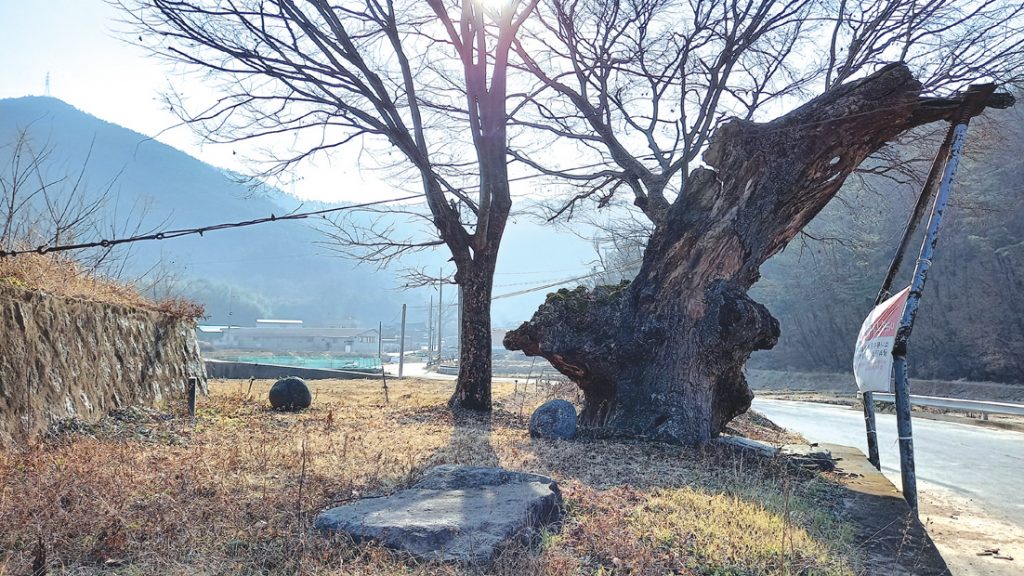 할매나무는 수령 300년, 높이 8m, 밑 둘레 4.8m, 직경 1.5m의 거목으로 1982년 보호수로 지정됐다가 현재는 해제된 상태다. 이 나무는 바닥에서 1m 높이에 지름 약 1m가 넘는 큰 구멍이 있는데 자세히 보면 숯덩이처럼 불에 탄 흔적이 뚜렷하다. 지금으로부터 30여 년 전 마을 아이들이 나무구멍에 불을 놓은 바람에 지금처럼 구멍이 커졌다고 한다. 현재 할매나무는 오래된 굵은 가지는 대부분 죽고 잔가지만 남아 있어 건강상태가 매우 좋지 않다. 그래서 지난 1982년 4월 5일, 후일을 기약하며 할매나무 곁에 2세목 한 그루 심어 마을에서 관리하고 있다.
