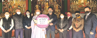 달성군 화원읍 소재 감은사(주지 만경스님, 신도회장 박순선)가 지난 22일 화원읍 행정복지센터(읍장 김진천)에 관내 저소득 한부모 가정 아이들에게 전해 달라며 현금 300만 원을 후원했다.