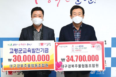 지난해 12월 29일(수) 대구경북주물협동조합에서 고령군청을 방문해 교육발전기금 3,000만 원과 이웃돕기성금 3,470만 원을 기탁했다.