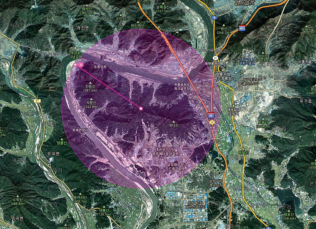대니산 반경 4km 권역