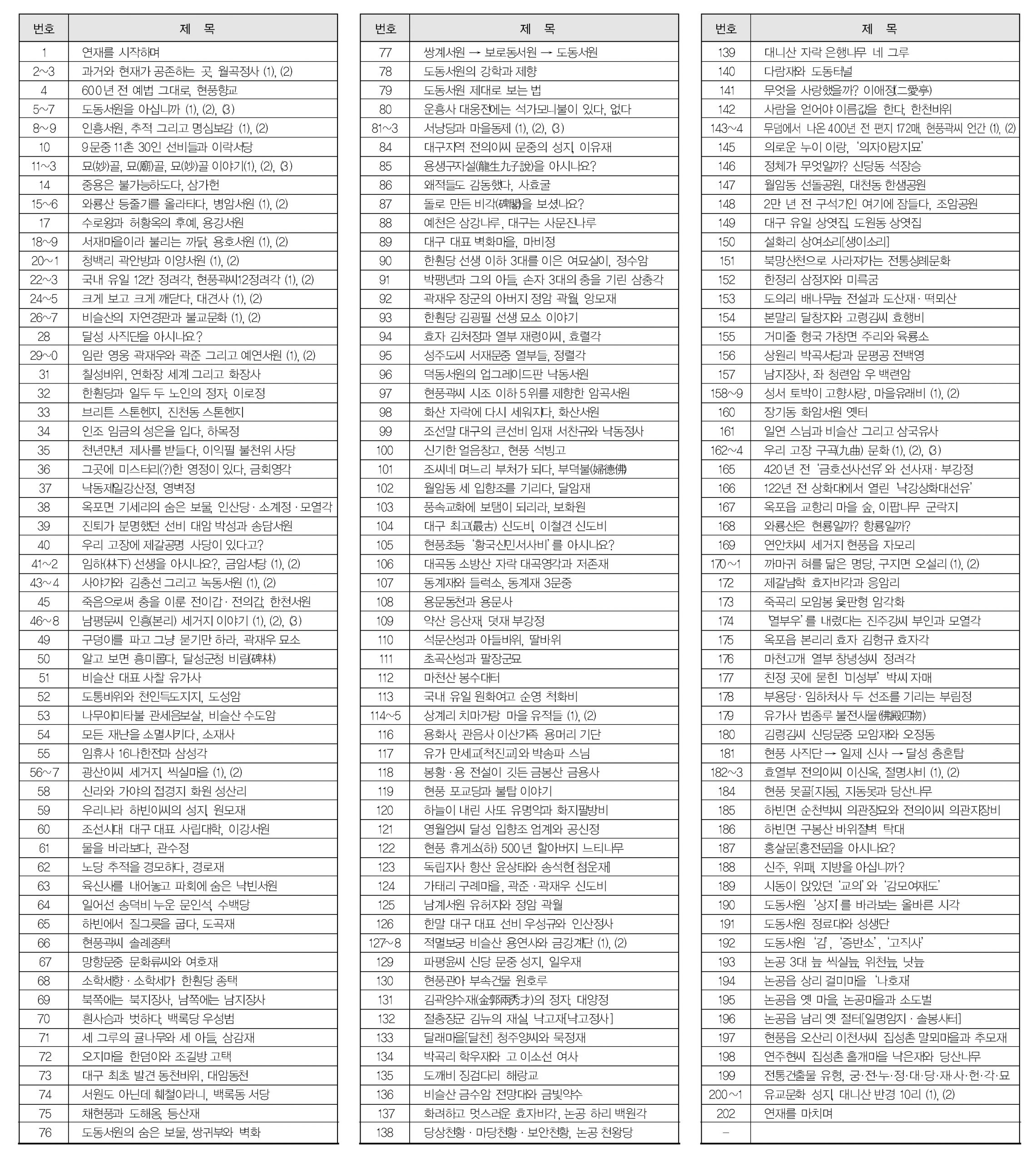 결론은 지난 4년 1개월간 연재한 202개 꼭지를 아래와 같이 표로 정리하기로 했다.
