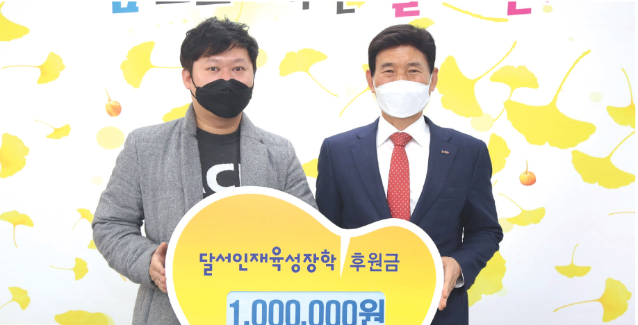 달서구 파호동에 위치한 한영공업사(대표 장한봉)는 지난 19일 지역 인재육성을 위해 써달라며 후원금 100만 원을 (재)달서인재육성장학재단에 전달했다. 한영공업사는 지역 내 어려운 청소년을 위해 2012년부터 지금까지 매년 1~200만 원씩 지속적으로 후원금을 달서구에 전달했다.