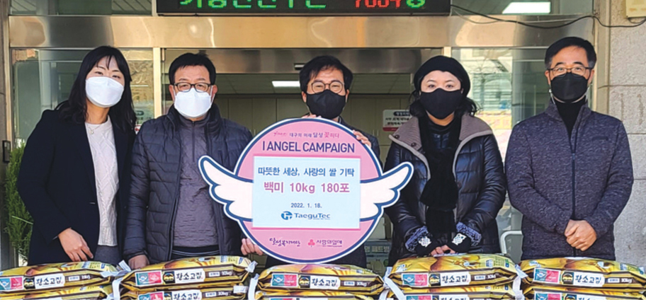 달성군 가창면에 소재한 대구텍(대표 한현준)이 지난 18일 행정복지센터를 방문해 가창지역 저소득 주민에게 전달해 달라며 ‘사랑의 쌀’ 백미 10㎏ 180포(530만 원 상당)를 기탁했다.