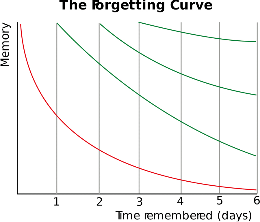 대학 생활이라는 게 청소년기와는 다르게 시간표를 자신이 다 짜고 수업에 들어가고 안가고도 자신이 대부분 스스로 결정한다. 이 점이 의무적으로 수업을 들어야만 하는 청소년기와는 근본적으로 다른 부분이다. 그래서 새내기 대학생이 되면 오히려 자유가 높아진 만큼 책임감도 늘어나고 자기관리와 자기절제가 필요해진다. 특히 성인이 되면 술도 마실 수가 있고, 운전도 할 수 있어 가용한 시공간의 범위가 늘어난다. 자칫하면 생활의 패턴이 완전히 망가질 수가 있는 위험도 있다. 학기 중에는 그래서 되도록 자신만의 루틴을 만들어두는 게 중요하다. 하루 중 특정한 시간을 떼어 그날 배운 부분을 복습하는 시간으로 떼어둔다. 청소년 수험생 시절의 공부보다 더 높은 강도의 공부를 대학생에게 이 사회는 요구한다. 이제는 자신의 전공이 있고 그 전공으로 사회에 나가 승부를 봐야 하기 때문에 요구되는 공부의 강도도 그리고 지식의 밀도도 높아진다. 대학 수업에서 정말 많은 정보를 습득하고 지식을 접하게 되는데 이런 부분들을 자신의 것으로 만들려면 반드시 복습의 시간이 필요하다. 필자가 학습법 관련 특강이나 강의 요청을 받으면 강조하는 개념이 있다. 바로 복습의 중요성이다. 실제로 정기적으로 아주 짧은 시간만 복습해도 망각의 속도가 획기적으로 줄어드는 에빙하우스의 망각곡선을 기억할 필요가 있다.