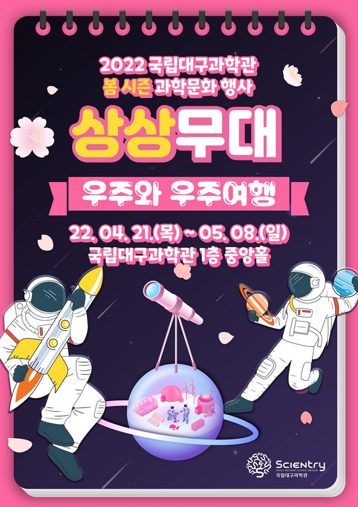 국립대구과학관 1층 중앙홀에서 진행되는 과학문화 체험행사는 ‘우주와 우주여행’(4. 21~5. 8)을 주제로 운영되고, 주말에는 사이언트리홀에서 클래식과 연극 공연이 진행된다.