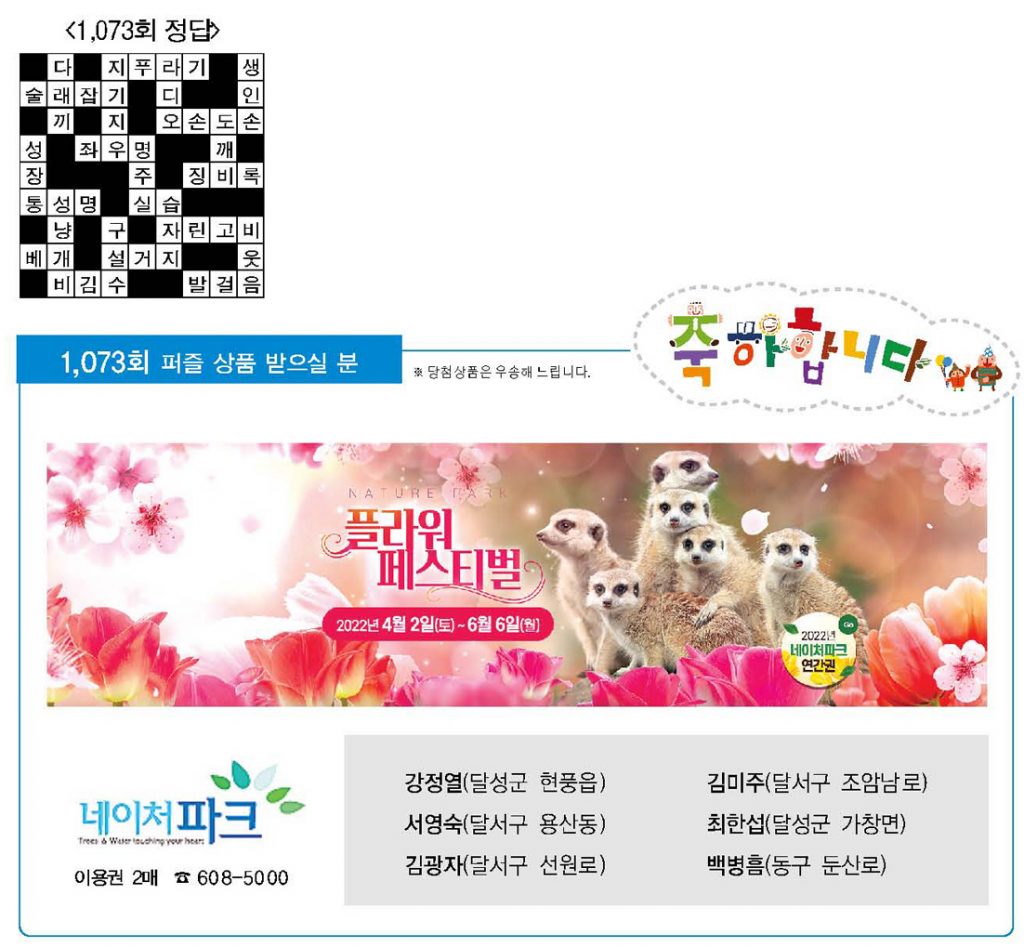 ♣ ‘가족과 함께 풀어보세요’정답을 아시는 분은 본사 편집부로 보내주시기 바랍니다. 6월 7일까지 도착된 엽서 중에서 추첨을 통해 상품을 드립니다. 주소를 정확히 기재해 주십시오. 당첨상품을 우송해 드립니다.