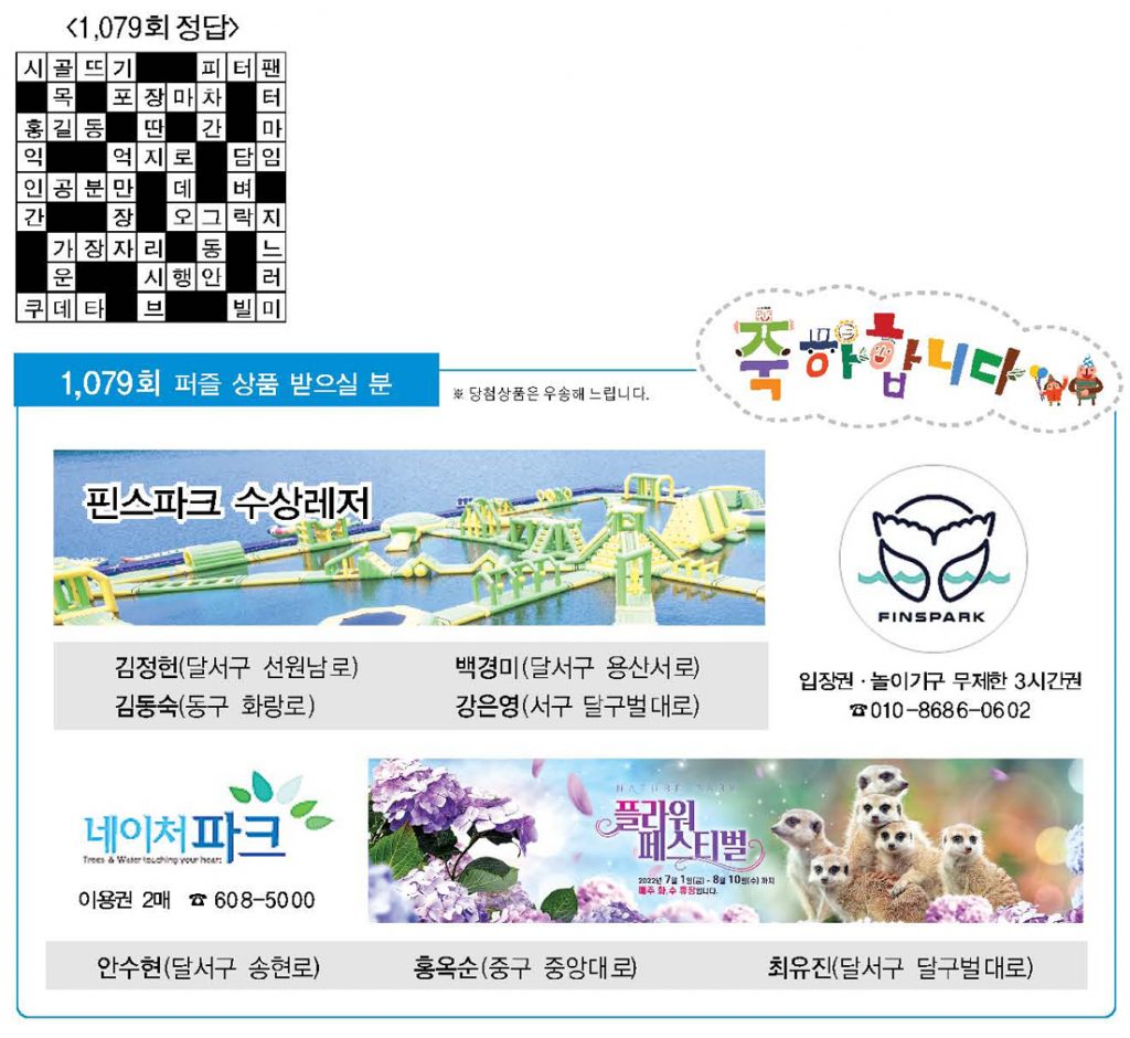 ♣ ‘가족과 함께 풀어보세요’정답을 아시는 분은 본사 편집부로 보내주시기 바랍니다. 7월 19일까지 도착된 엽서 중에서 추첨을 통해 상품을 드립니다. 주소를 정확히 기재해 주십시오. 당첨상품을 우송해 드립니다.