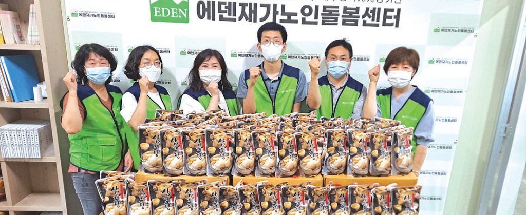 에덴재가노인돌봄센터에서는 다가오는 복날을 맞아 어르신이 소외되기 쉬운 절기에 안부 인사와 선물 지원을 통해 정서적 소외감 및 고독감을 해소하고 생활의 활력 유지를 지원하기 위해 복날 지원 서비스를 실시했다. 이번 복날지원서비스는 7월 11일~22일까지 사회복지사와 생활지원사가 680분의 어르신 댁을 방문해 삼계탕 680개를 지원했으며 또, 어르신들의 생활환경을 점검해 불편사항이 없도록 지원했다.