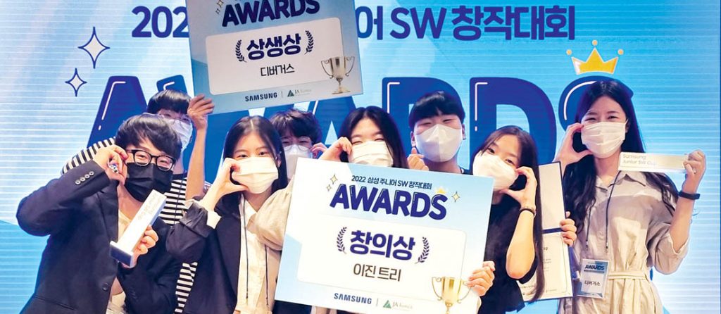 대구소프트웨어마이스터고등학교(교장 박유현, 이하 대구소마고)는 지난 3일에 열린 ‘2022 삼성 주니어 SW 창작대회’ 시상식에서 고등부 2팀(본교 학생 6명)이 수상했다. 이날 열린 시상식에서 수상한 고등부 전체 3팀 중 2팀이 본교 학생들만으로 이루어져 눈길을 끌고 있다.