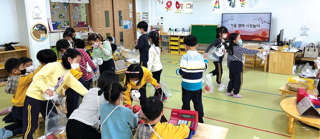 상원유치원(원장 이정화)은 열매반 각반 교실에서 가을을 맞이해 시장놀이를 계획했다. 아이들은 숲체험과 현장체험학습을 통해 가을열매에 대해 관심을 가졌고, 가을열매로 가을을 맘껏 즐기며 시장놀이로 이어졌다. 시장놀이를 통해 얻은 수익은 11월 3일 초록 우산 어린이 재단에 기부를 했다.