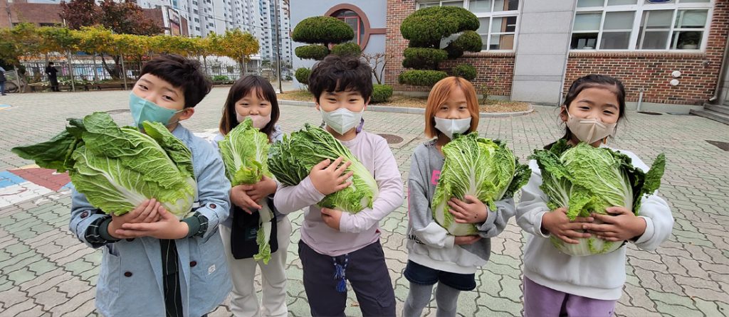 금계초등학교(교장 최홍남)는 최근 학교 텃밭에서 전교생이 모두 함께 참여해 배추 수확 체험활동을 실시했다. 지난 가을 학교 텃밭에 직접 심고 가꾼 배추는 어느새 무럭무럭 자라 있었다. 얼굴보다 더 크고 싱싱하게 자란 배추를 뽑아 비닐봉지에 담아가는 학생들의 얼굴에 뿌듯함이 가득했다.<자료제공:금계초등학교>